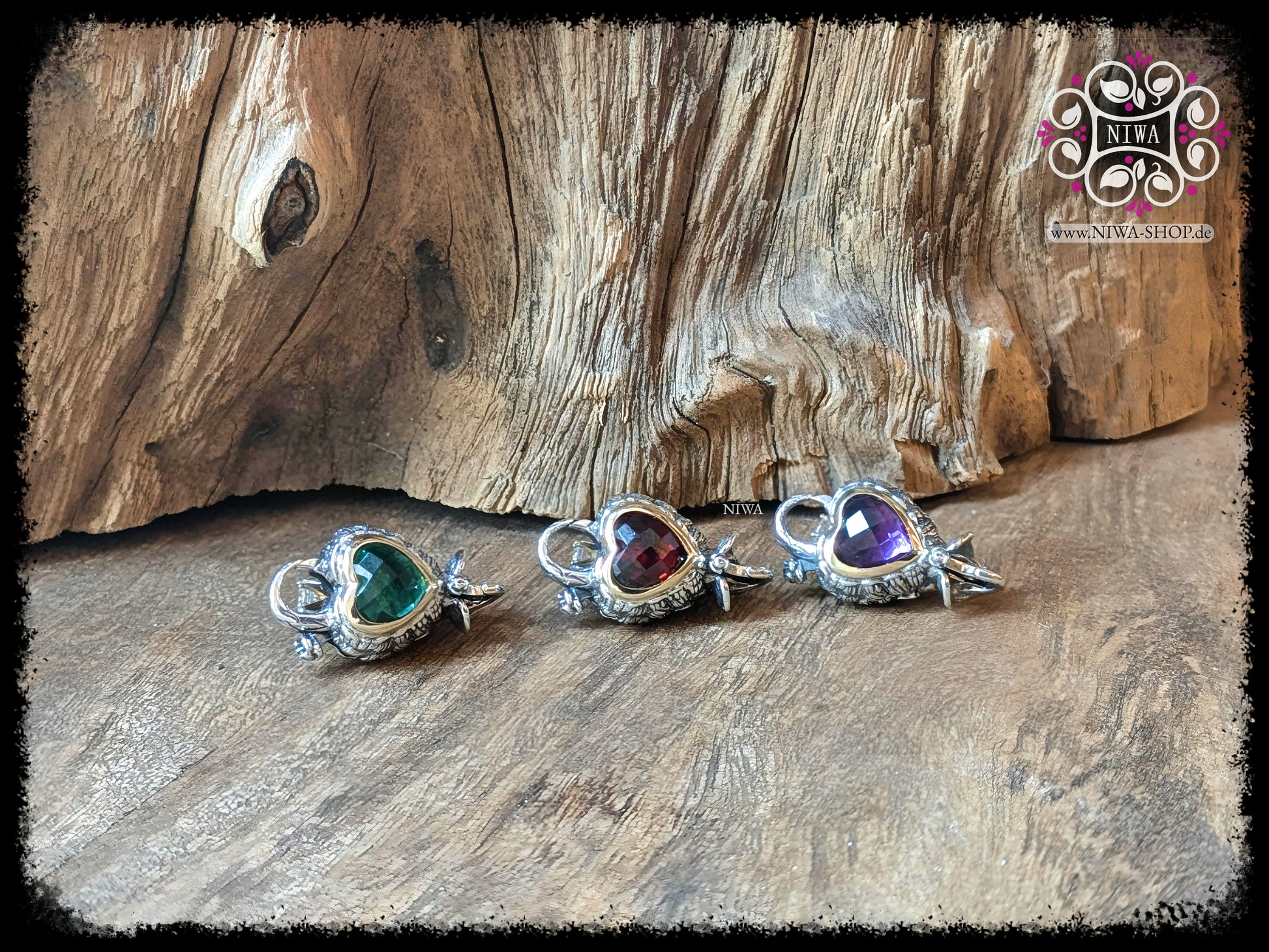 On the other hand, the striking face of the heart queen shows itself in fine silver - a symbol for her unpredictable power and her distinctive style 👑. Its head adorns a small, masterfully crafted crown of solid 14k yellow gold, in the middle of which a radiant white sapphire shines 💫.