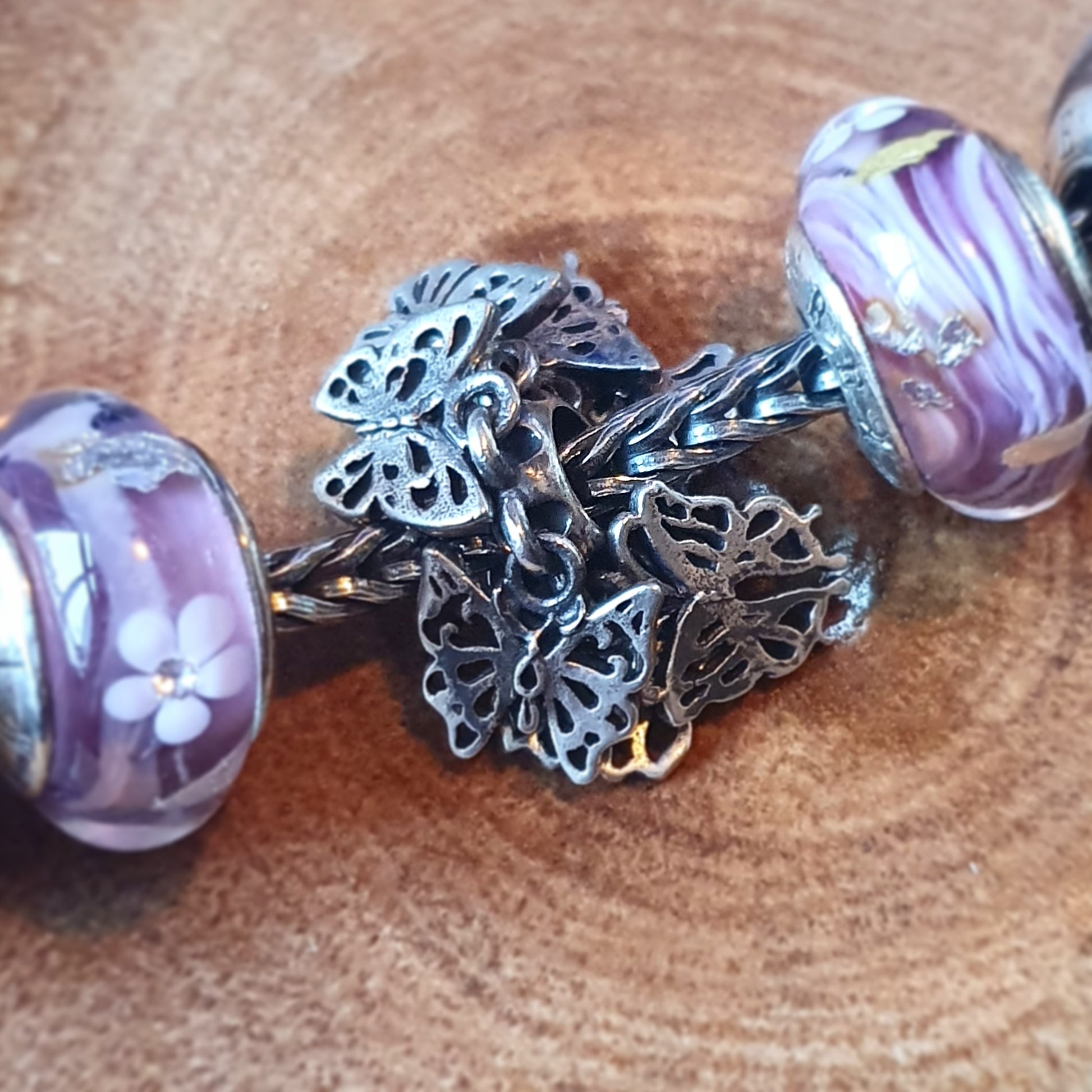 The spacer is made of 925 silver and each of the seven butterfly is unique in the design.