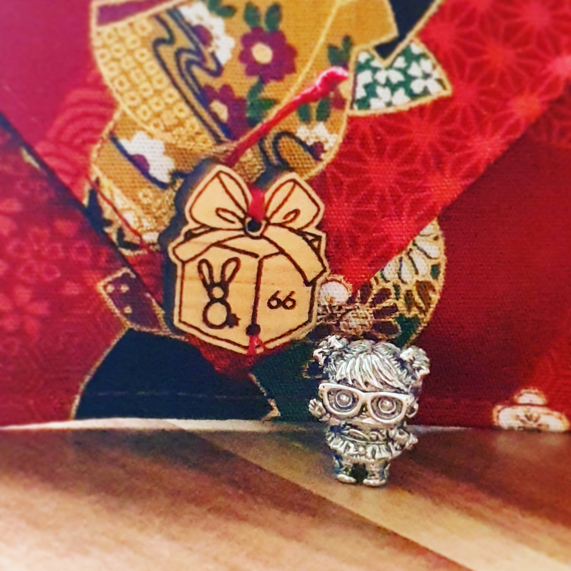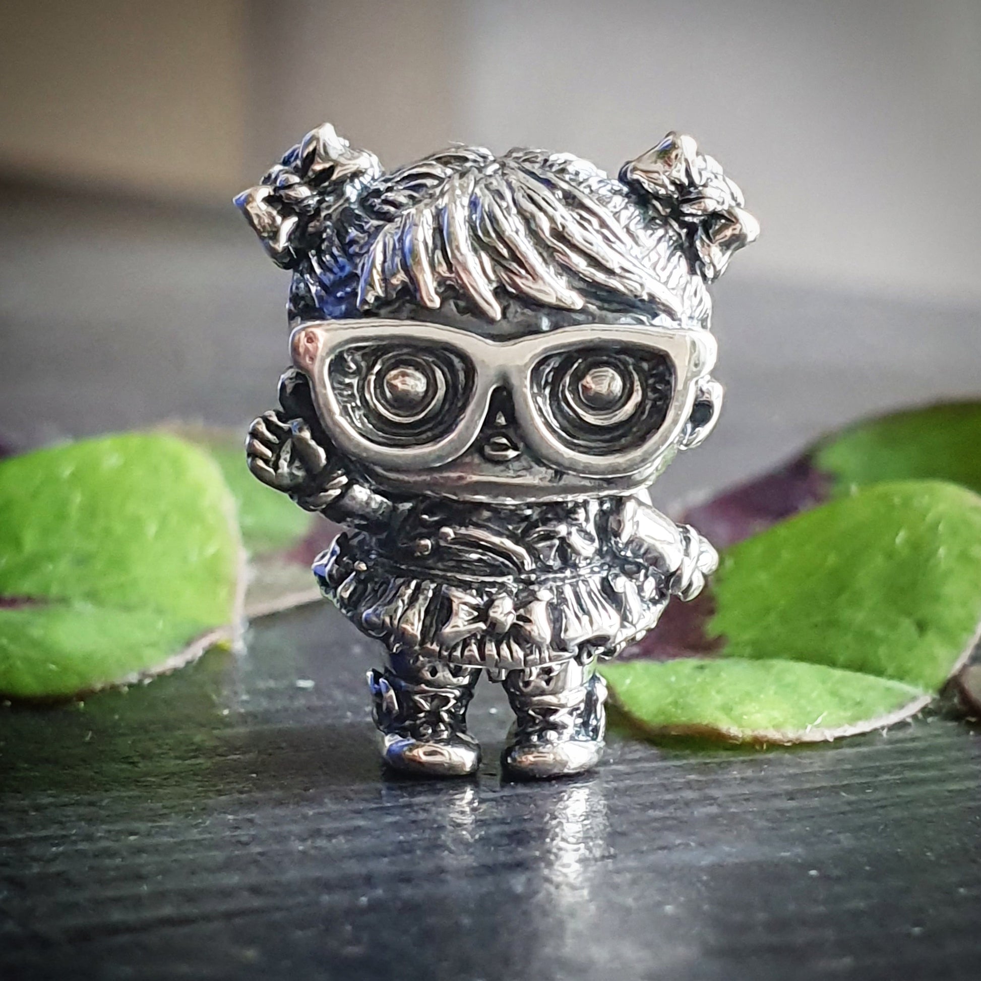 With a happy wave she all greets her around her. Her great glasses sitting on her nose and underlining her lovable character. Happy brings joy, lightness and a smile to your life, a little lucky charm for every day.