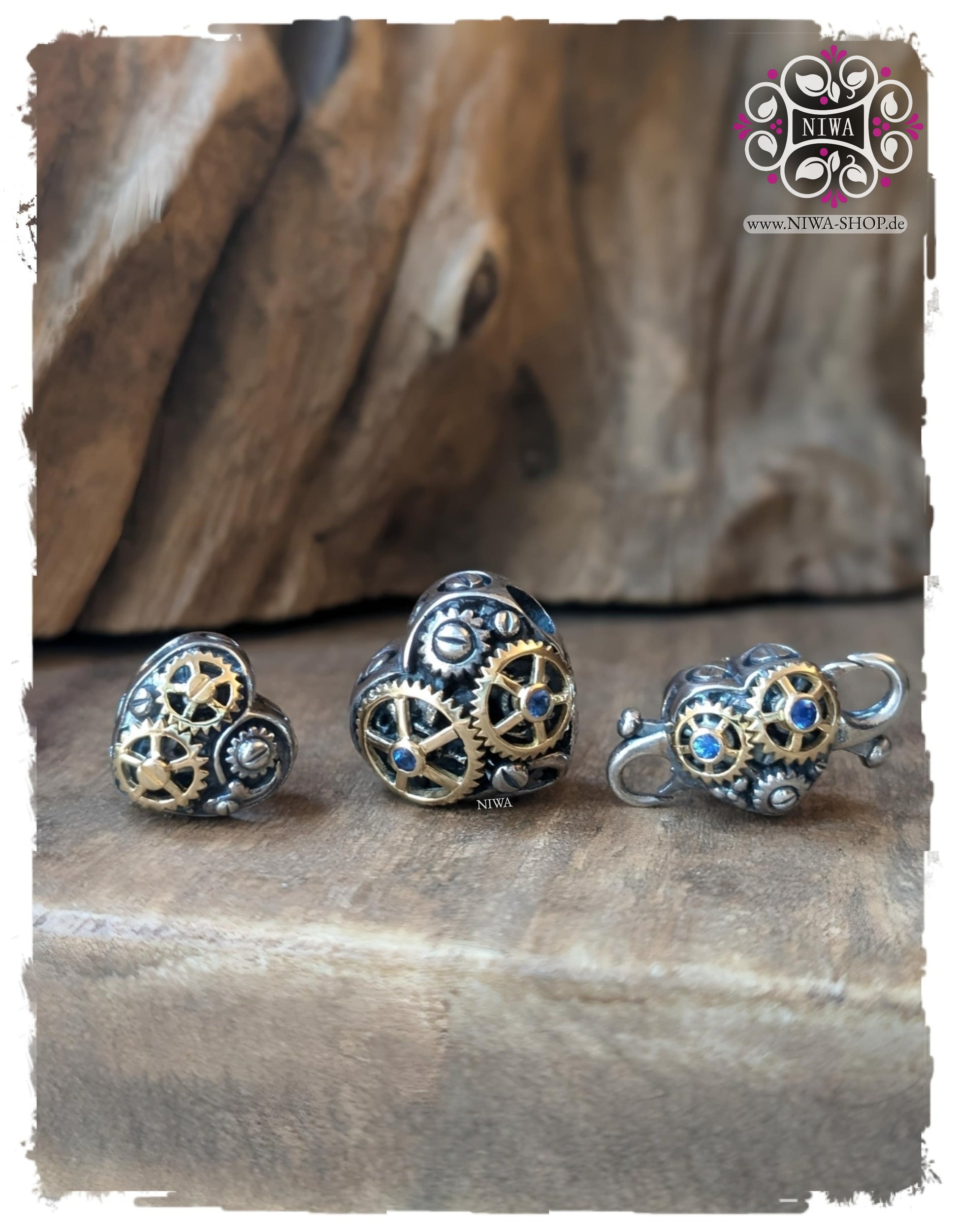 Immerse yourself in the fascinating world of the "Time Machine" collection with our exquisite "Healing Heart" series. This magnificent and very noble "big" charm combines the technical sophistication of the interlocking gears with the symbolic shape of a heart and gives your jewelry a luxurious touch.