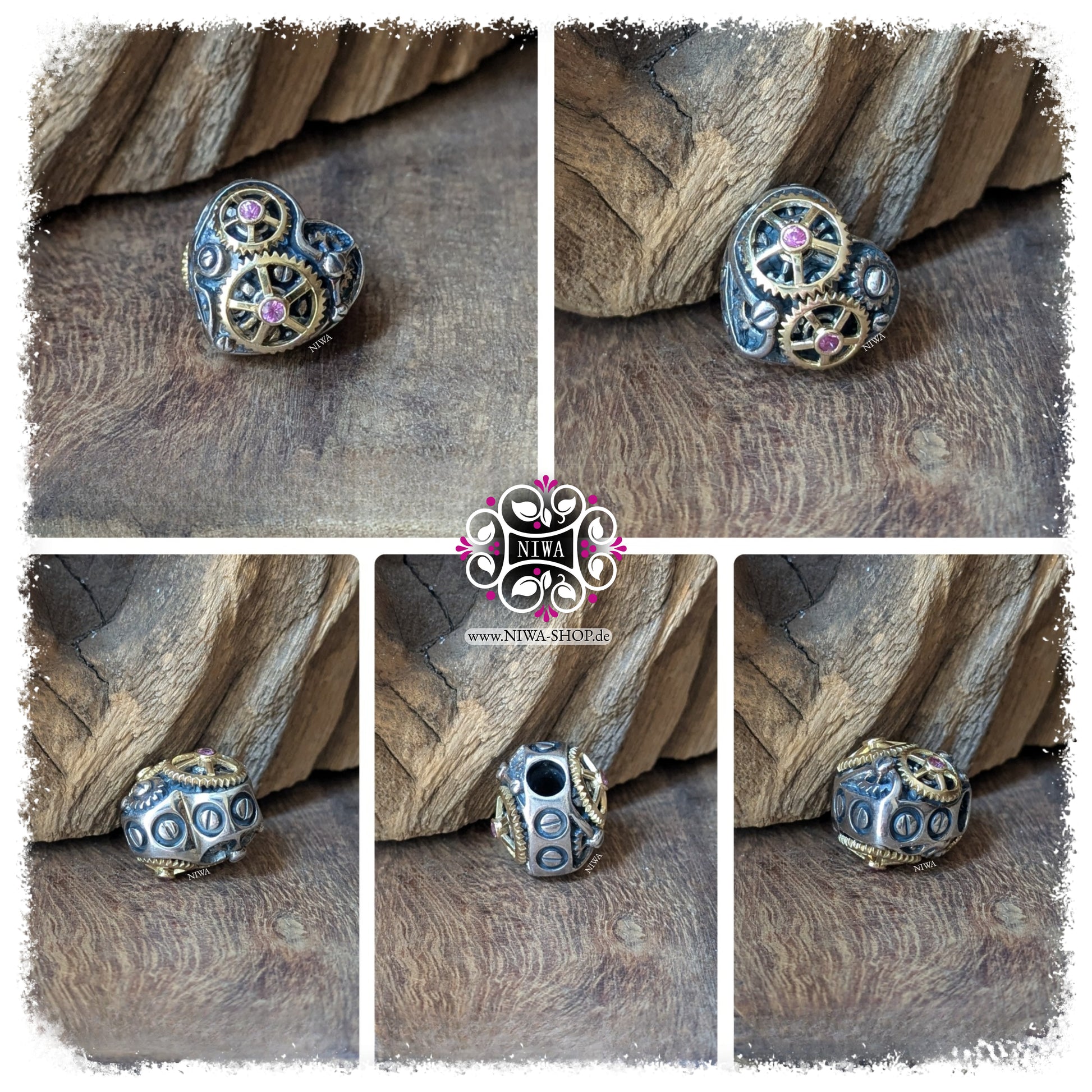 Detailed design: In the gaps between the gears there are precisely worked connecting rods and other mechanical components that give the design a technical sophistication. The depressions in the spaces create a three -dimensional impression and give the Bead an impressive depth.