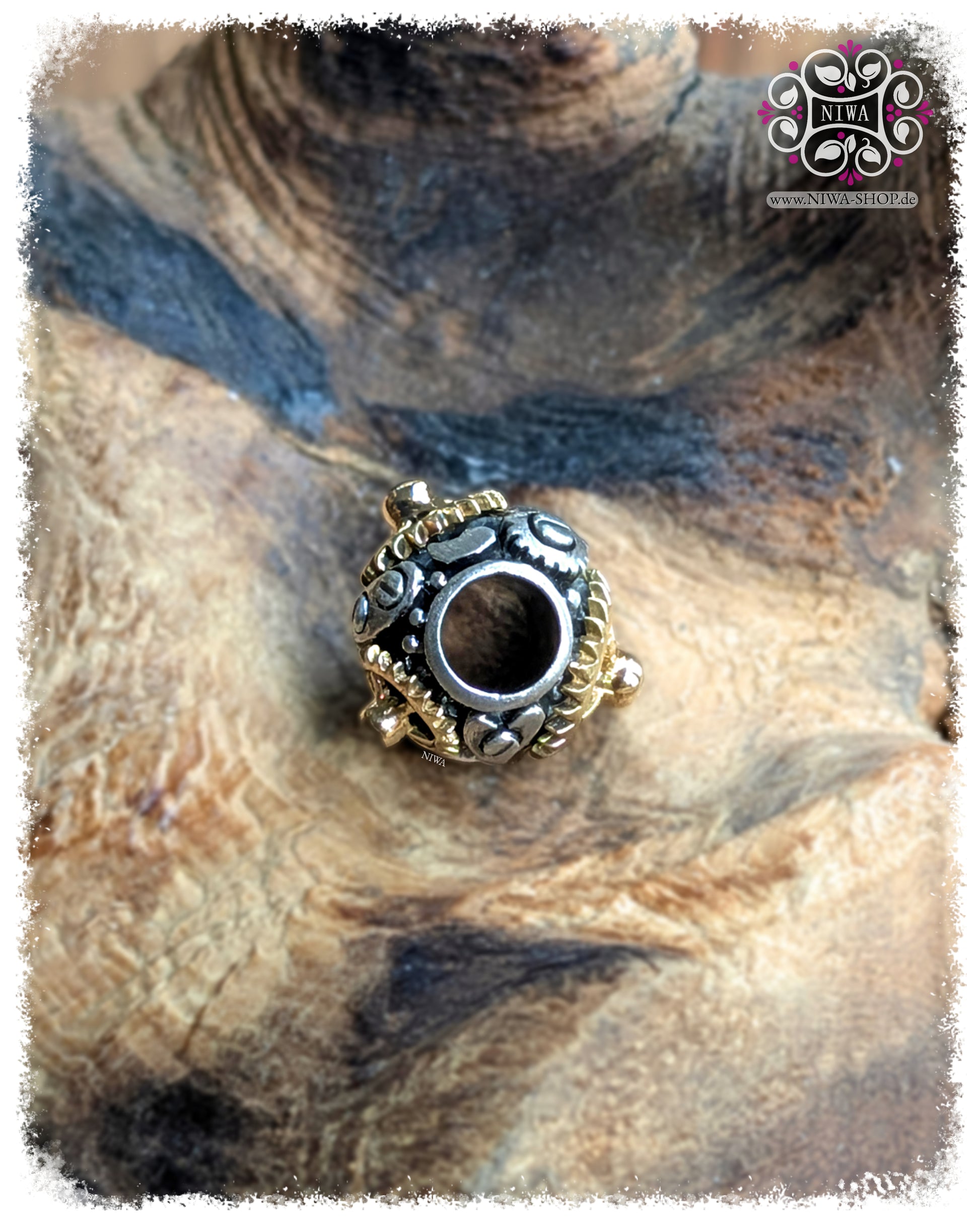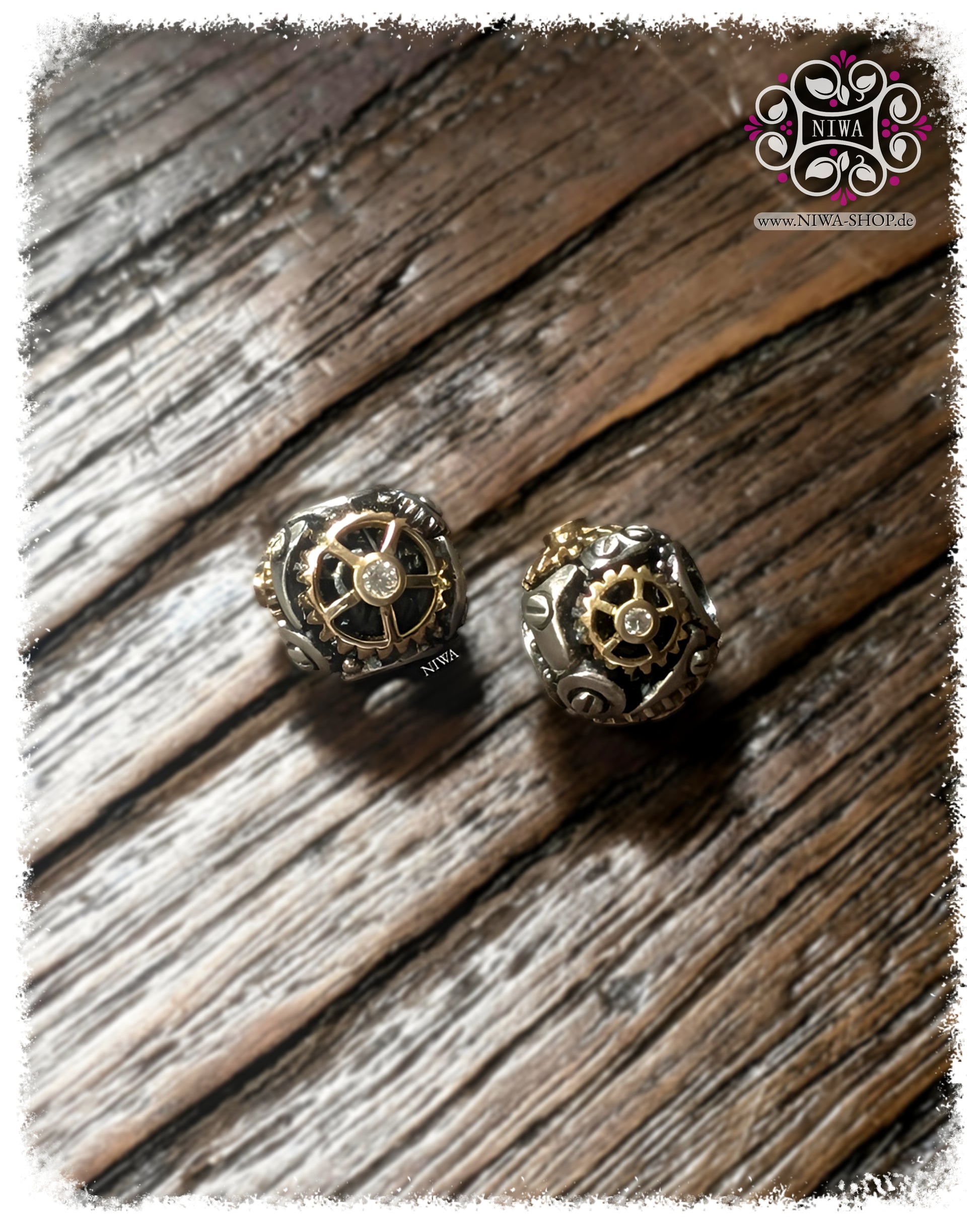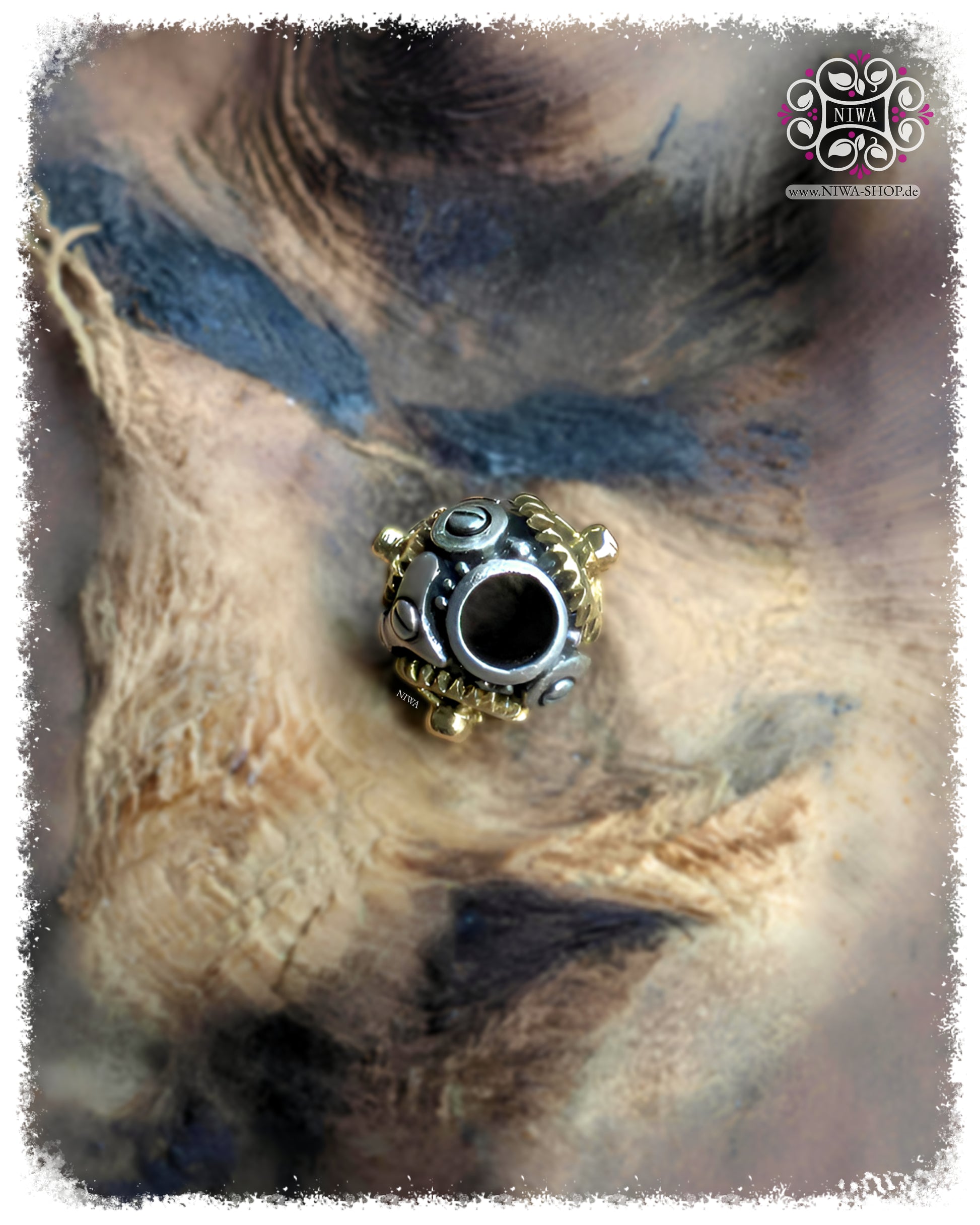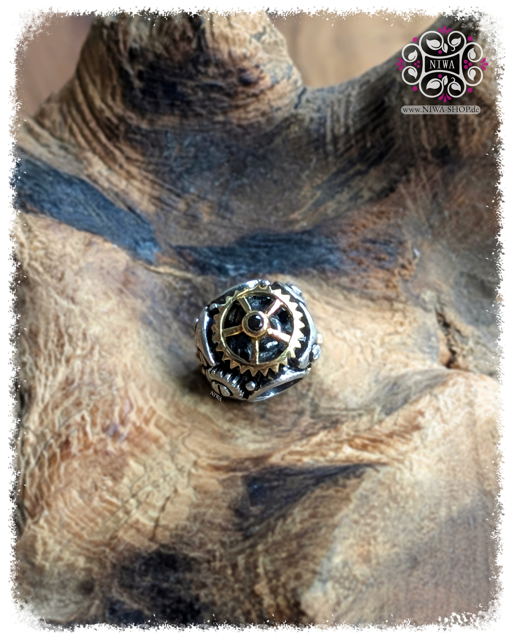 This WHEEL of LIFE MiniCharm, made from solid 925 SterlingSilver with elements of solid 18K YellowGold or RoseGold (TwoTone), is compatible with all common bead bracelets and can be perfectly combined with Charms, Spacers and Beads from other modular jewelry systems.
