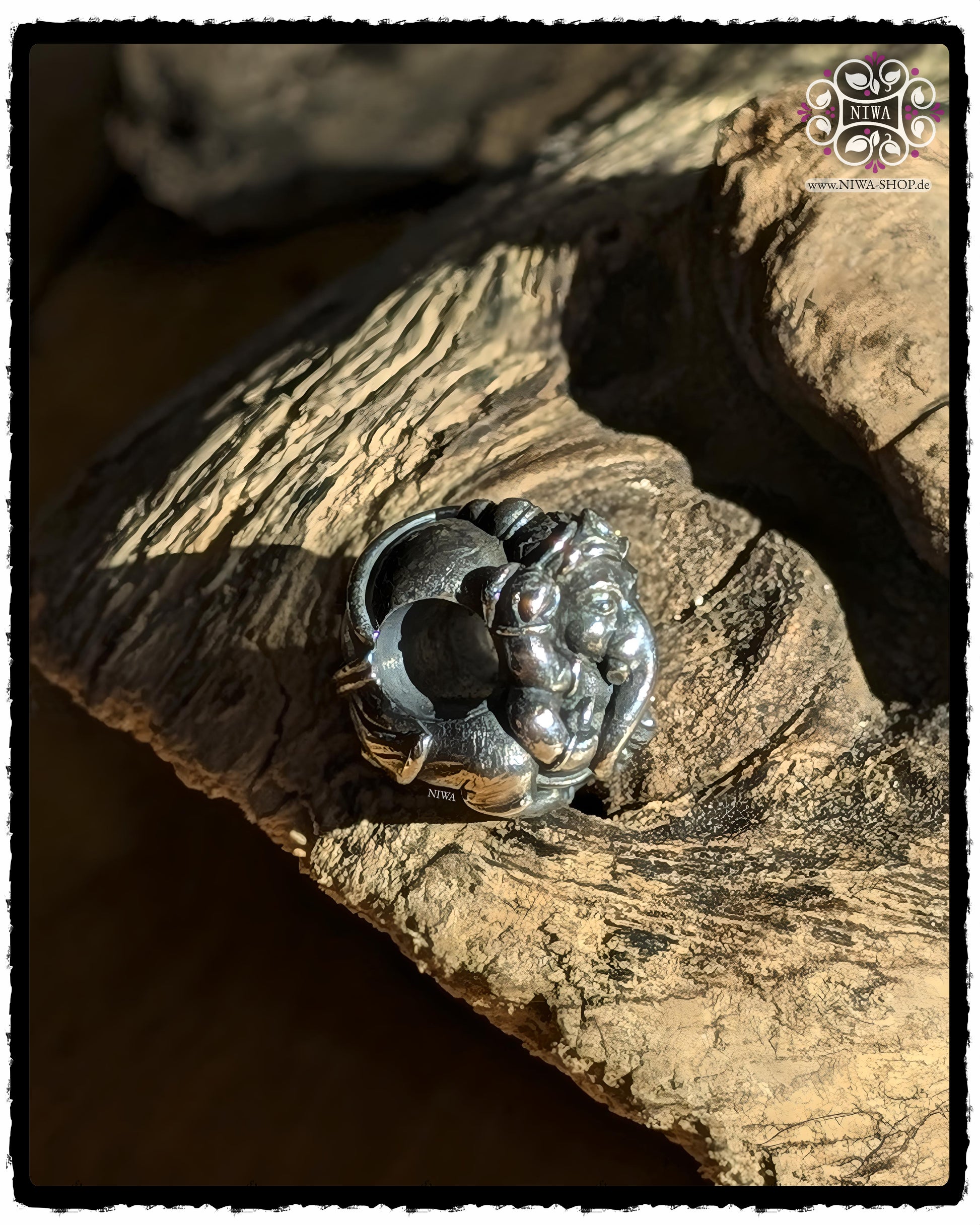 GANESHA TEJAS, das Licht Ganeshas. Dieser außergewöhnliche Charm vereint spirituelle Symbolik mit harmonischer Formensprache: Ein kraftvoller Ganesha in nahezu kugeliger Gestalt, als Symbol für Ganzheit, Fülle und innere Mitte.