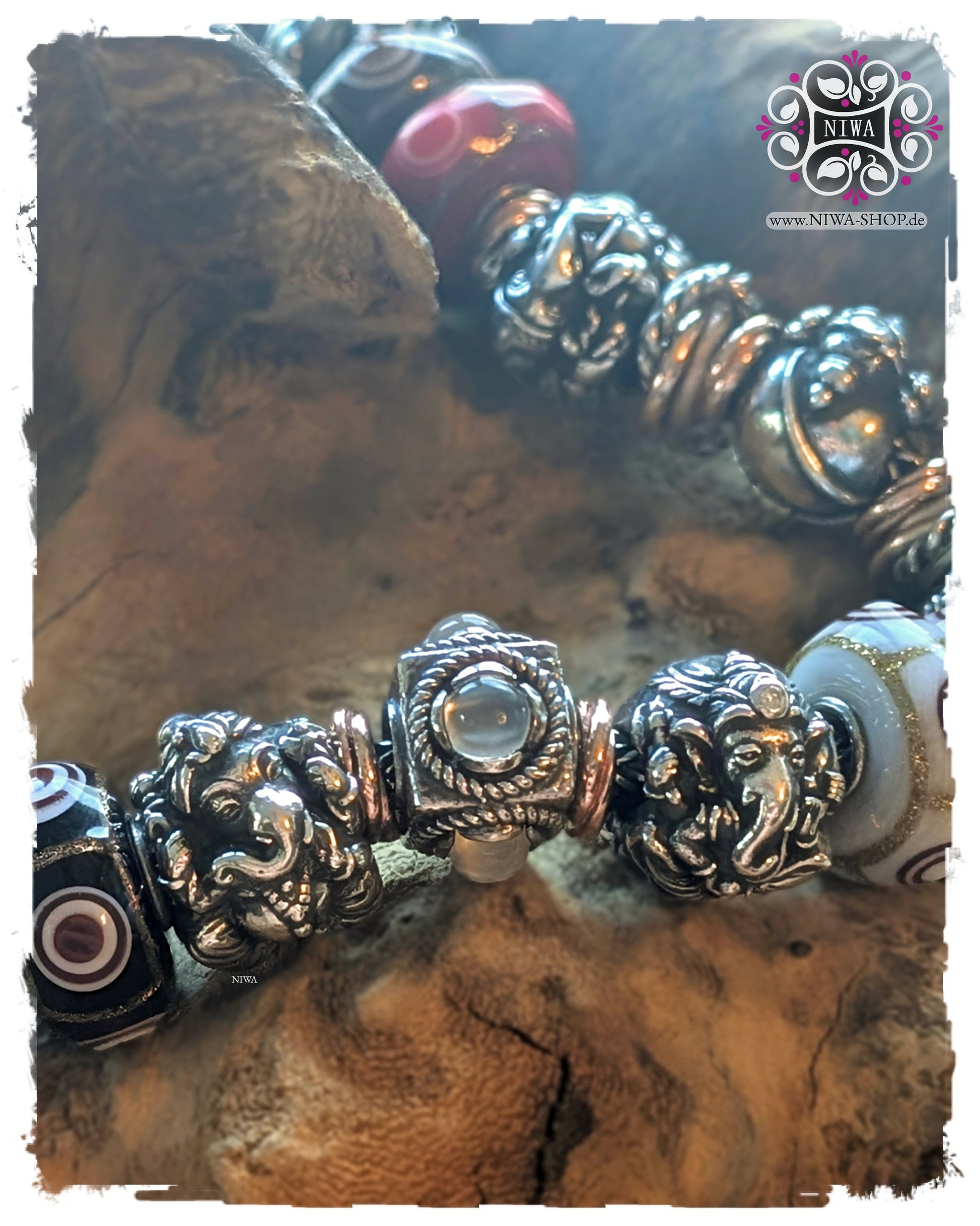 Der tiefrote Granat verkörpert Mut, Kraft und Liebe. Er gilt als Schutzstein für Reisende und stärkt den Lebenswillen. Ein Bead voller Feuer und Lebenskraft.
