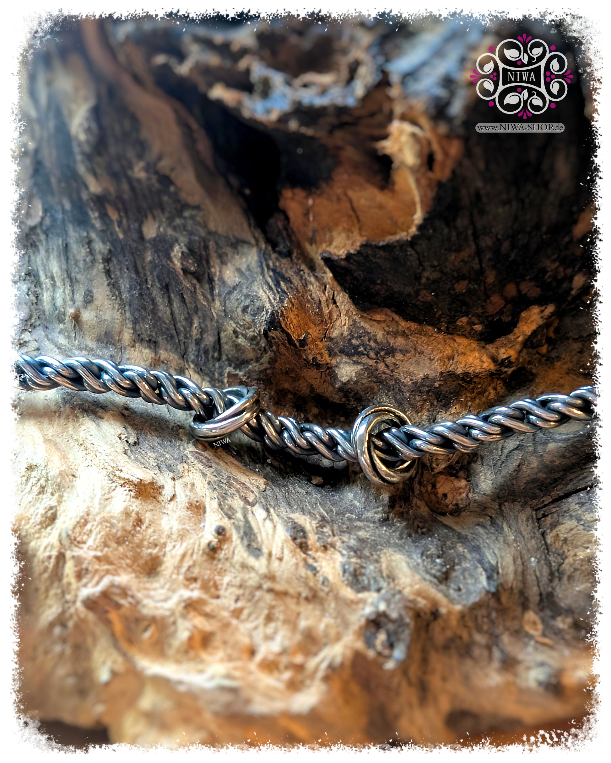 Ihre ineinander verschlungenen Formen verkörpern den Fluss von Energie, Balance und Harmonie. Zwei sanft gedrehte Linien vereinen sich zu einer endlosen Bewegung, die Ruhe und Dynamik in vollkommenem Gleichgewicht hält, ein Symbol für Zusammenhalt und Vollendung.