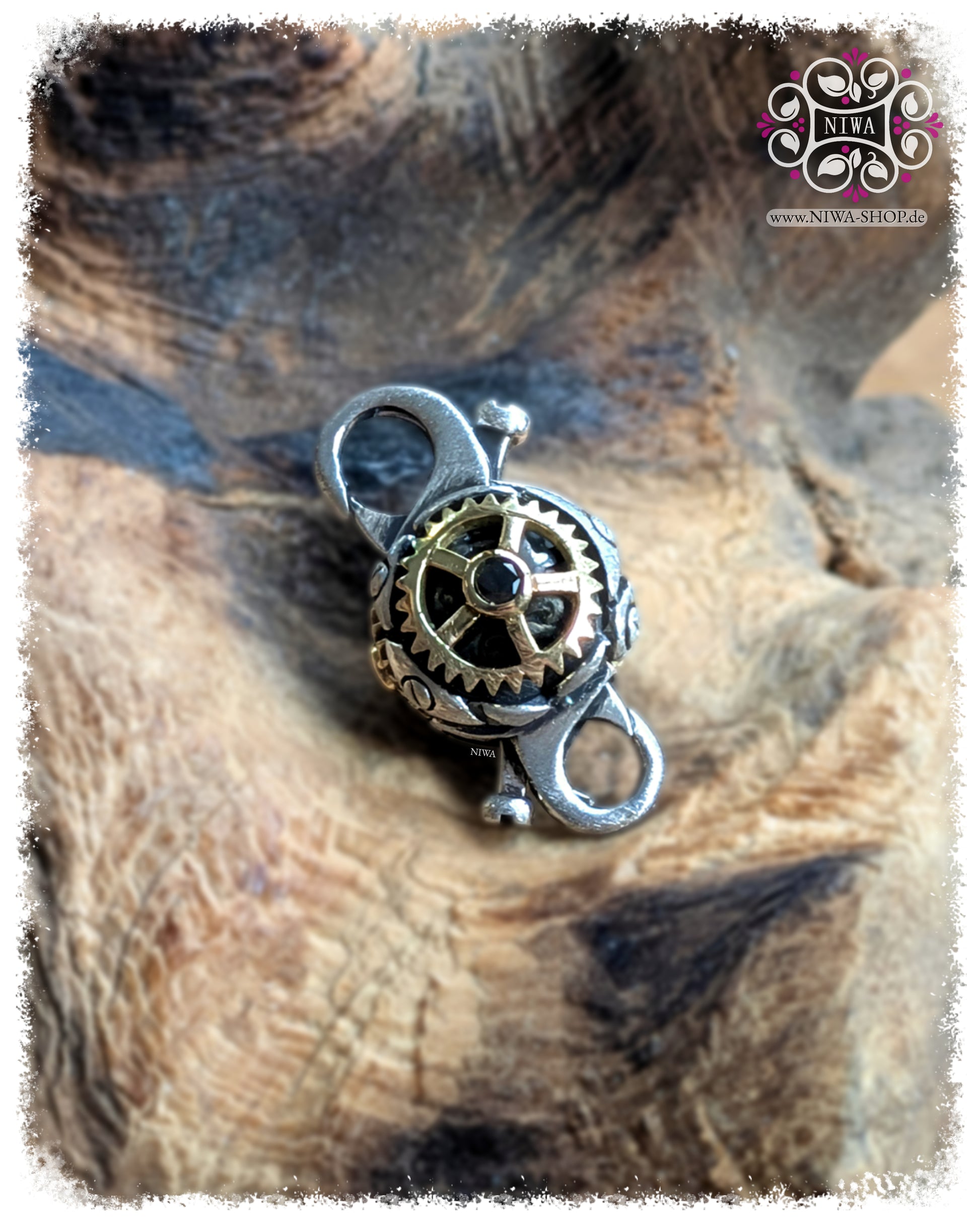 Ideal für Sammlerinnen und Liebhaber mechanischer Luxus-Schmuckstücke, die ihr Armband mit diesem handgefertigten Verschluss ergänzen möchten, der präzise Zahnräder und echte Diamanten (weiß und schwarz) als Symbol für Sicherheit und den ewigen Kreislauf des Lebens vereint.